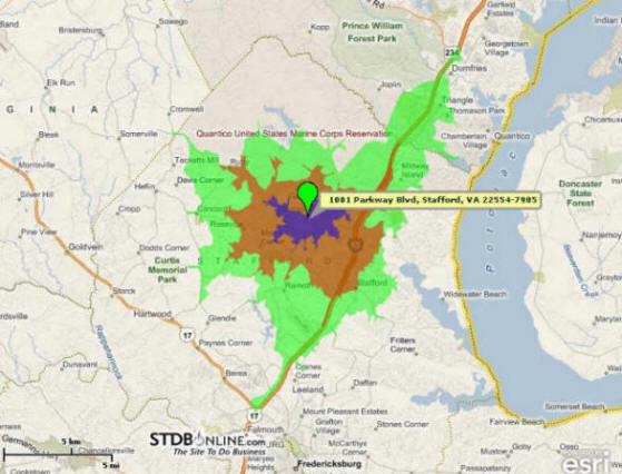 Click HERE for Demographic Report ________________________________ Below, Drive Time polygons: 5, 10 and 15 minutes