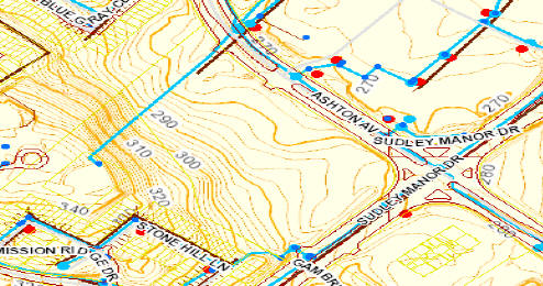 Below, topography and water /sewer illustrated Click HERE for detailed PDF with Legend.